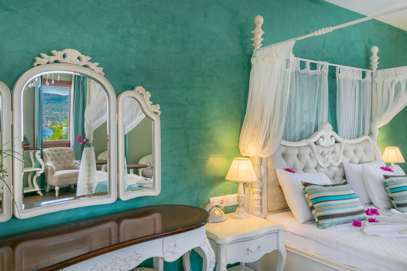 Balayı suitimiz 2 kişilik olup odalarımız geniş ve ferah bir yapıya sahiptir. Balayı için Selimiye'yi tercih etmiş çiftlerimiz için harika bir seçenektir. Triple odalarımız 3 kişilik Aile odalarımız ise 4 kişiliktir. Tüm odalarımızda Selimiye'nin deniz veya dağ manzarasını görebileceğiniz balkonlar veya pencereler bulunmaktadır.